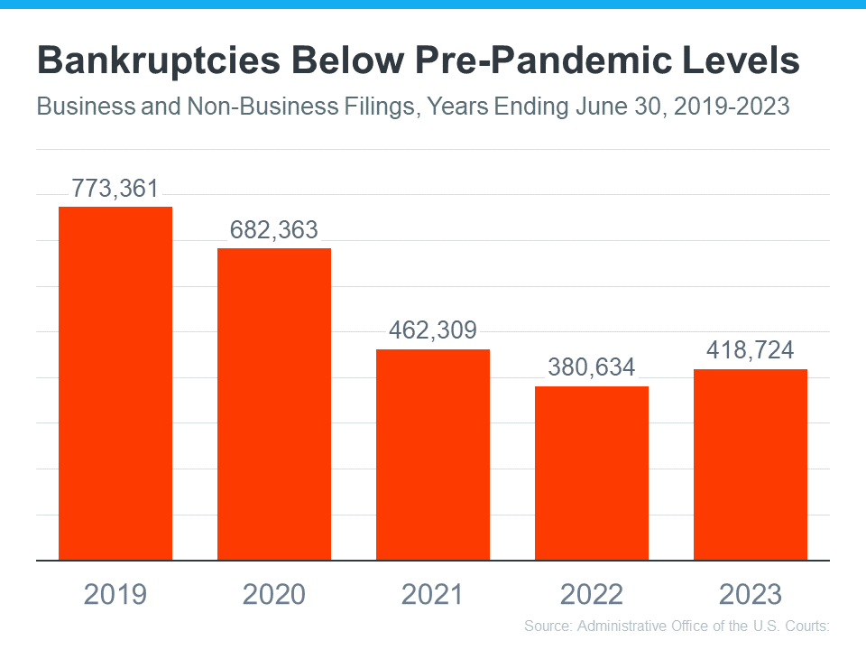 The numbers for 2021 and 2022 were lower than more typical years. That’s in part because the government provided trillions of dollars in aid to individuals and businesses during the pandemic. So, let’s instead focus on the bar for this year and compare it to the bar on the far left (2019). It shows the number of bankruptcies today is still nowhere near where it was before the pandemic. Both of these two factors are reasons why the housing market isn’t in danger of crashing.